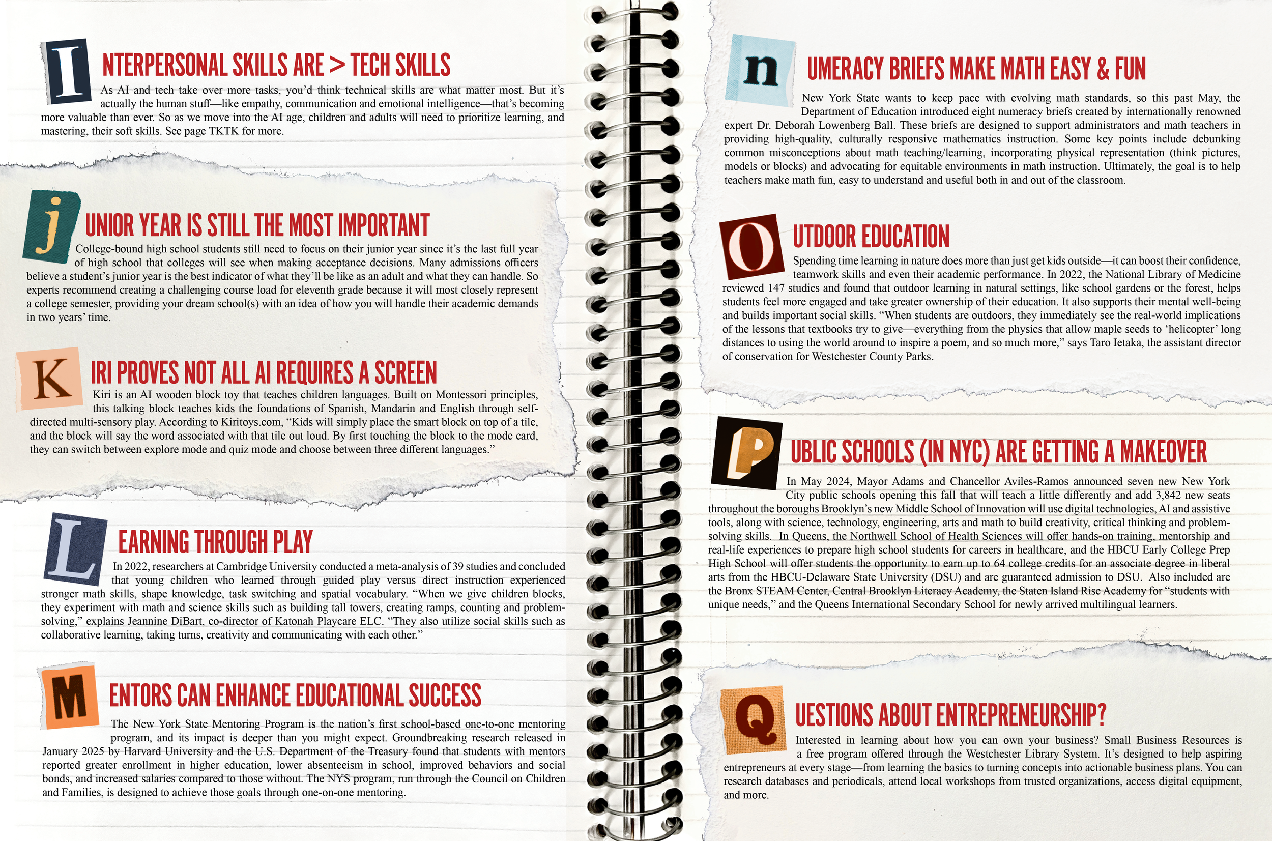 Education from A to Z A layout for an article by Connect to Northern Westchester magazine about recent news in education.
