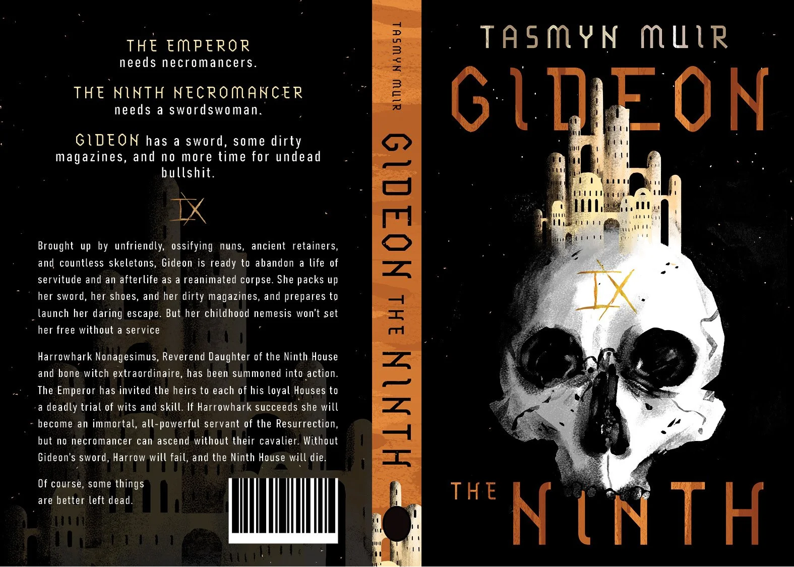 Cover redesign concepts for Tasmyn Muir’s Gideon the Ninth, including five iterations of illustrated covers, sketches and type treatments.